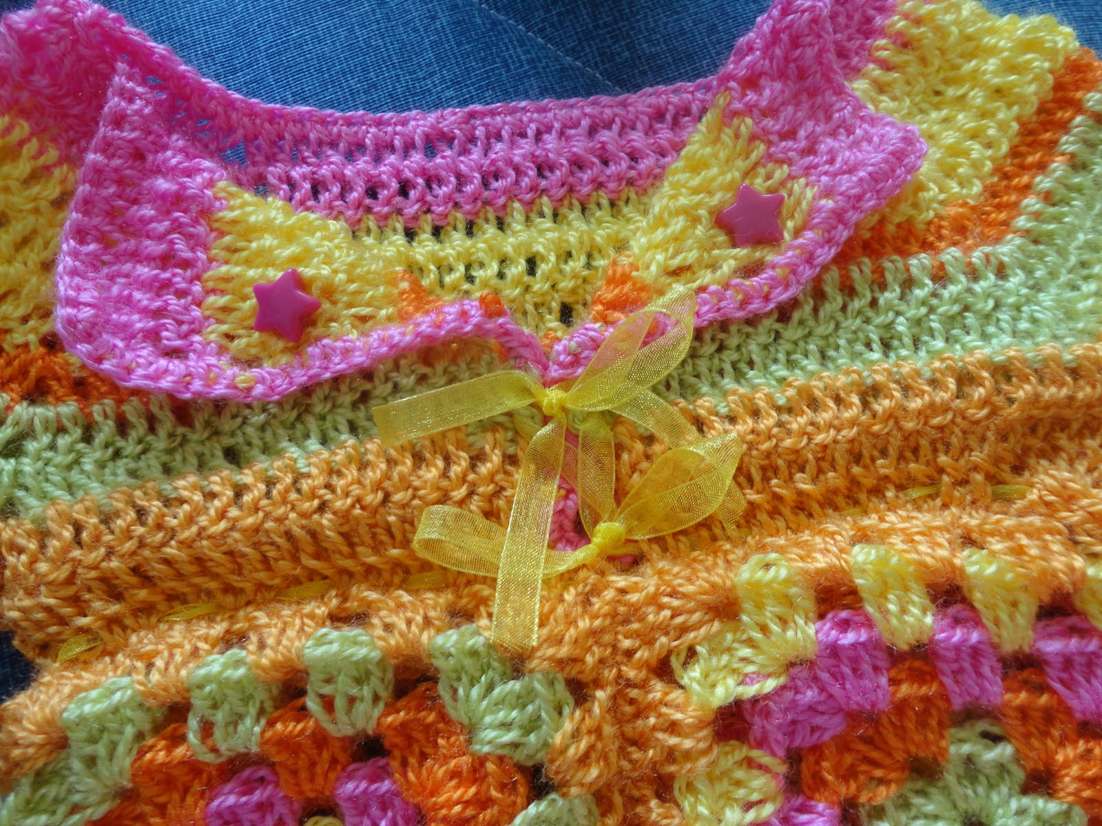 Voici deux petites créas (un petit poncho et une petite brassière granny en vente au prix de 20€ l'unité + frais de port) avec les chutes de laine perlée de mes petites brassières....
